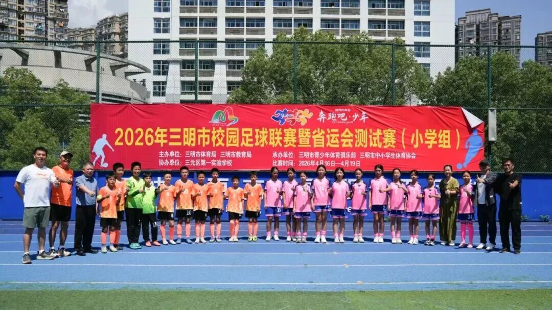 4月19日,“迎省运盛会 展三明风采”2026年三明市校园足球联赛暨省运会测试赛(小学组),在三元区第一实验学校圆满落下帷幕。本次比赛由市体育局、市教育局主办,三明市青少年体育俱乐部、三明市中小学生体育协会承办。