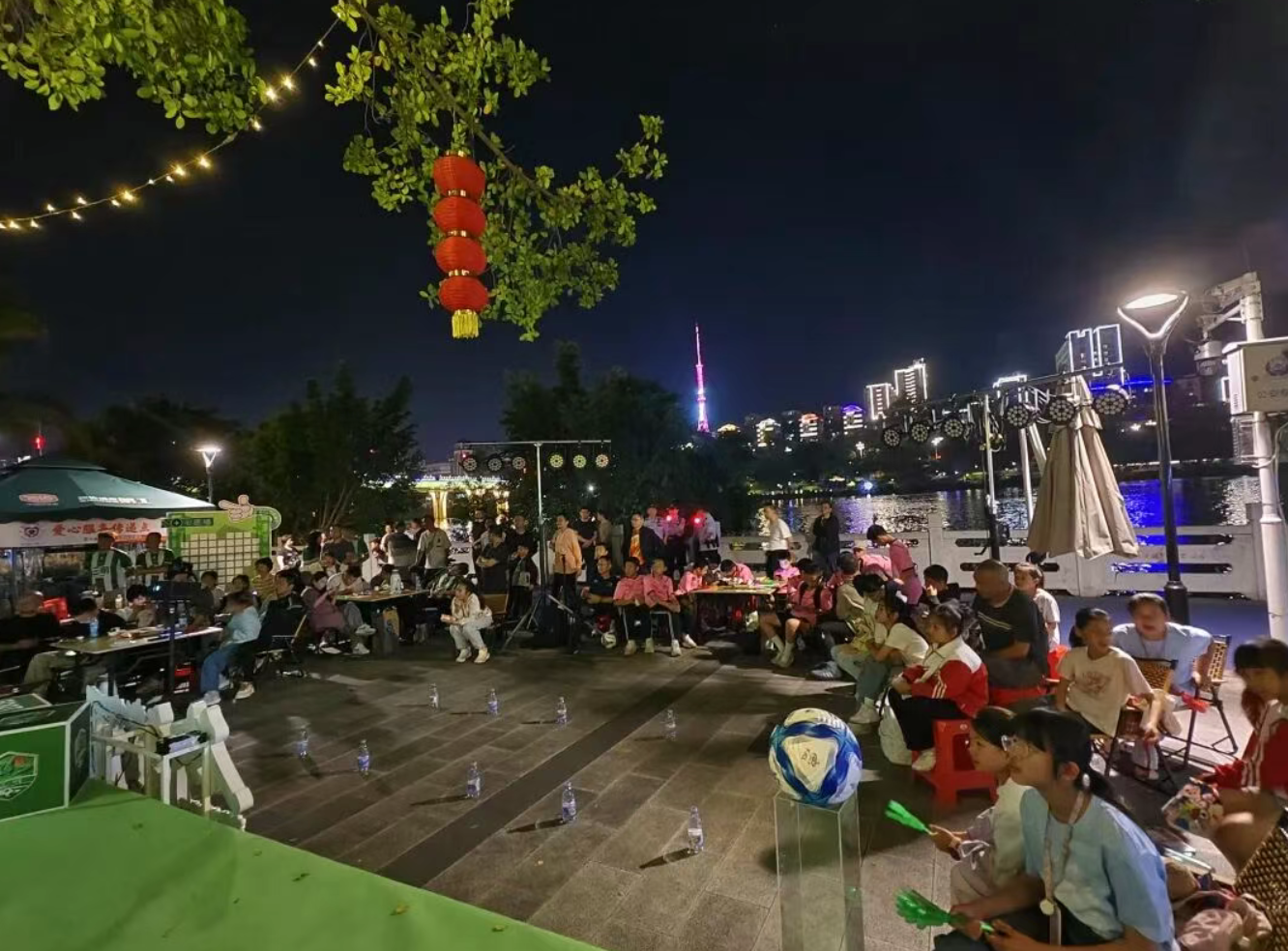 绿茵场上激战正酣,赛场之外,市民以多元方式相聚“第二观赛现场”,用欢呼与掌声为家乡球队加油鼓劲,浓厚的足球氛围点亮了城市的夜晚。
