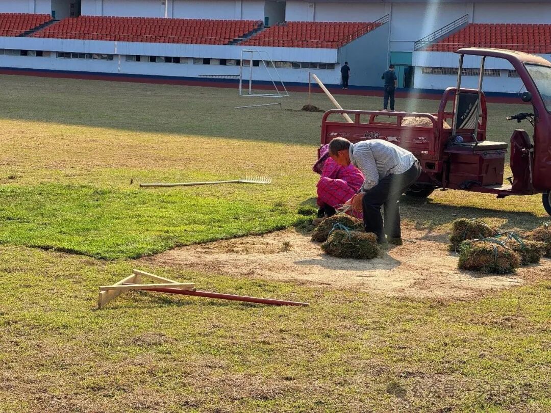 在永安市体育中心改造施工现场,工人们分工明确,正在忙碌地进行热身区改造,并对足球场草坪进行修缮养护。据了解,在“闽超”的常规赛和排位赛阶段,永安市体育中心足球场作为赛事主场地,将举行多场比赛。届时,多支城市代表队将在此同台竞技,展现八闽足球的活力与风采。